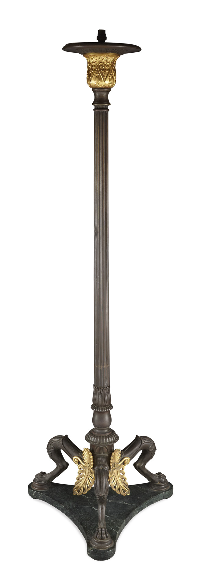 EMPIRE STYLE GILT AND PATINATED BRONZE STANDARD LAMP