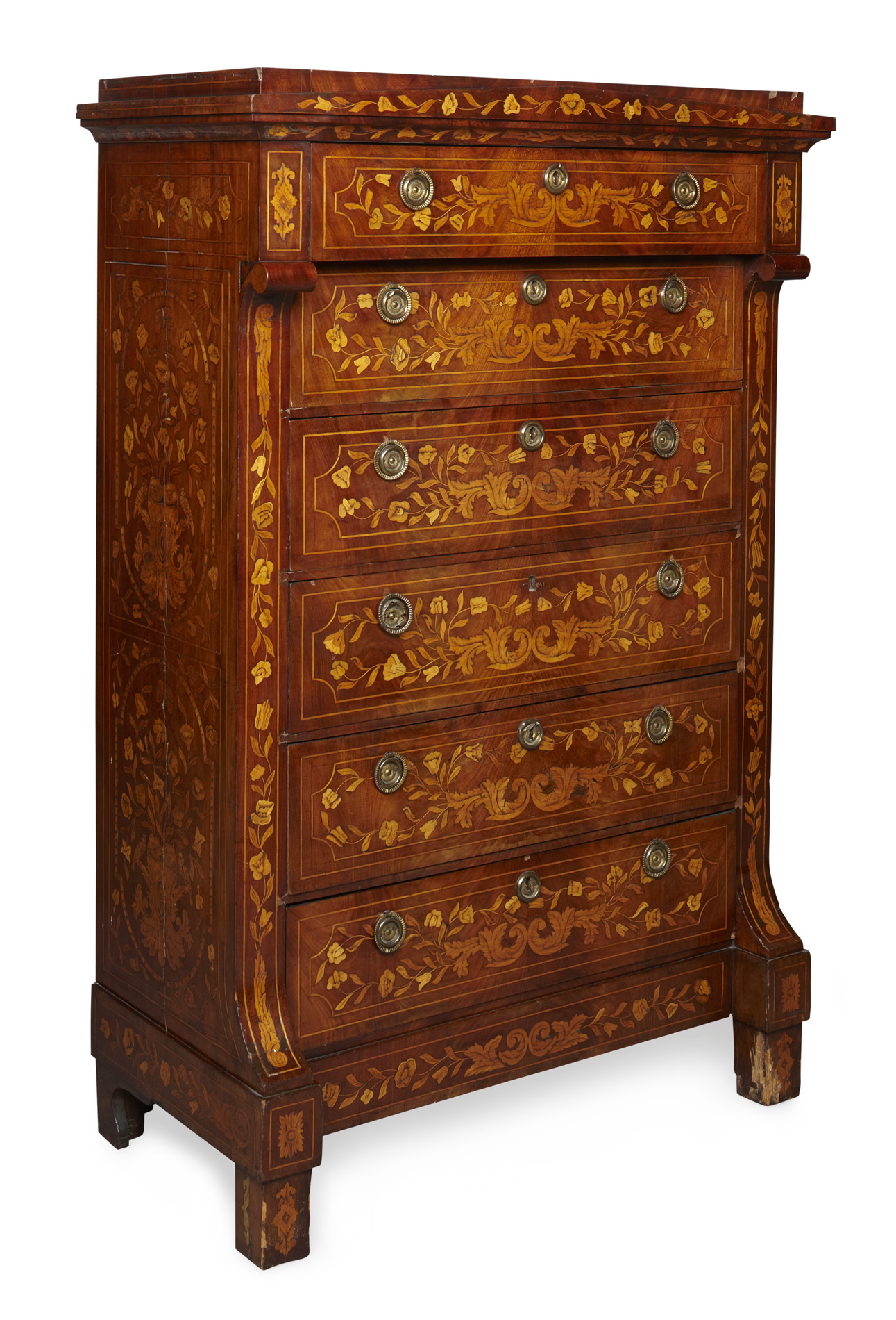DUTCH WALNUT AND MARQUETRY TALL CHEST OF DRAWERS