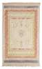 the cream field with green lozenge medallion and foliate spandrels, within triple green, red and cream borders, blue bands to each end