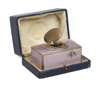 the rectangular box in mauve guilloche enamel with an oval hinged cover opening to reveal a gilt pierced panel from which emerges a small songbird with iridescent feathers which moves side to side and opens its beak to sing, in a fitted blue leather case, the interior with silk lining stamped 'A. Lancel / 38 Rue des Italiens / Paris', French silver import marks