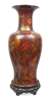 of baluster form decorated with a pheasant and flowers, on a carved hardwood stand