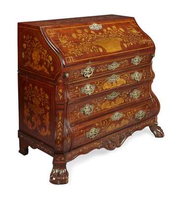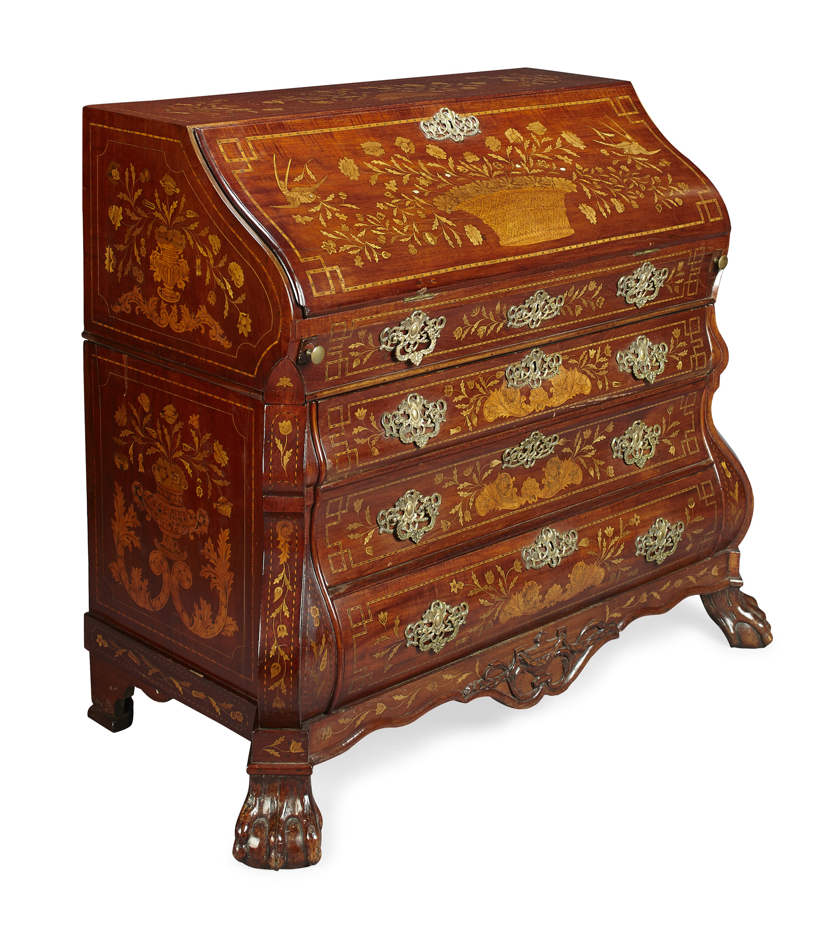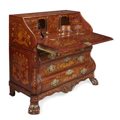 DUTCH WALNUT AND MARQUETRY BOMBE BUREAU