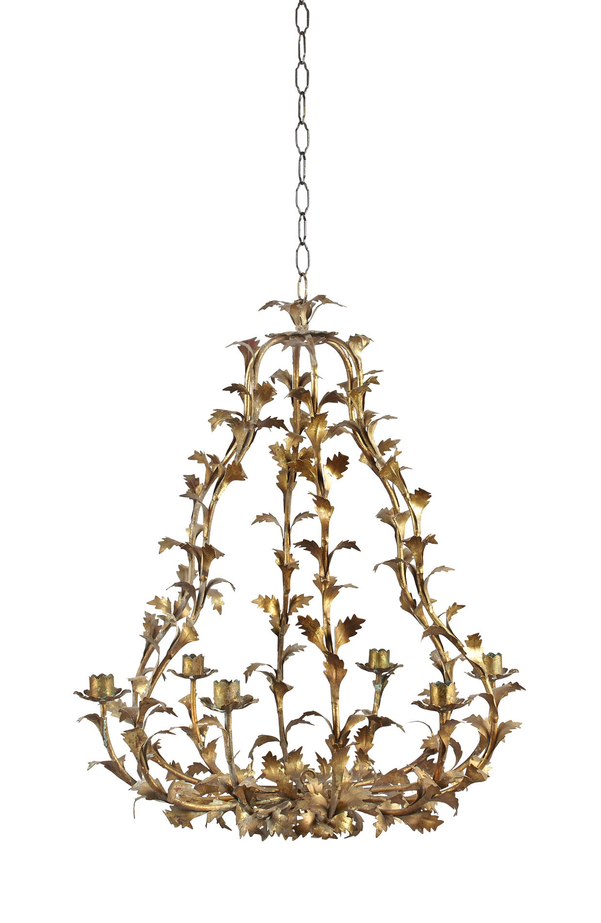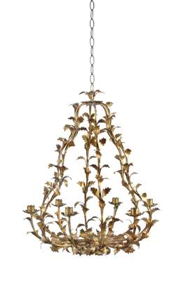 the openwork frame covered in gilt metal leaves and with six flower-form candle holders