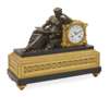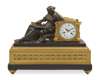 LOUIS XVI STYLE GILT AND PATINATED BRONZE MANTLE CLOCK BY DENIERE