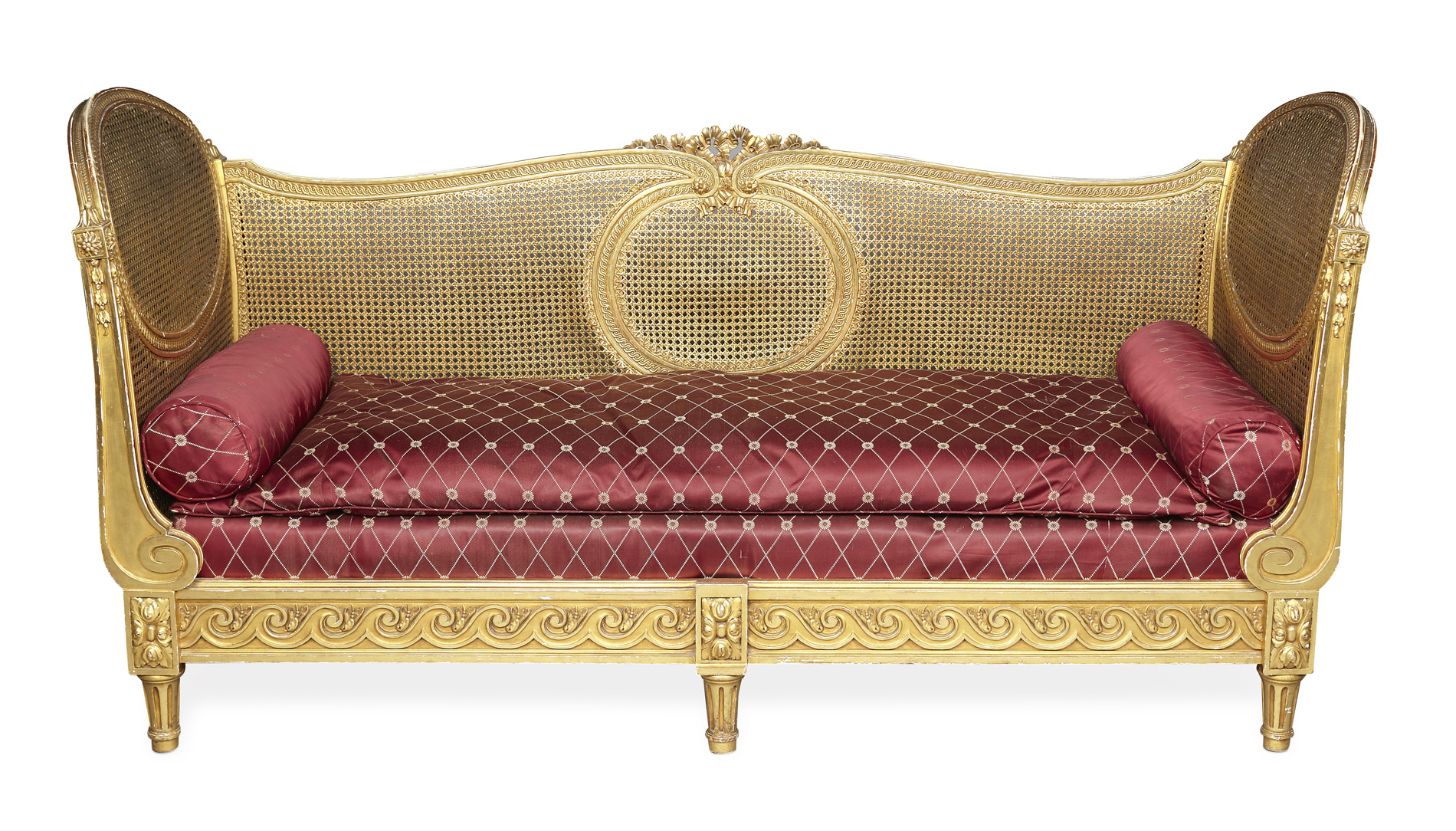 LOUIS XVI STYLE GILTWOOD CANED DAYBED