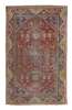 the madder red field with allover rosette, palmette and foliate vine pattern, within polychrome palmette and foliate scrolling border between bands