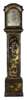 the arched and moulded hood over a silvered dial with Roman and Arabic chapters and subsidiary strike/silent and seconds dials and a date aperture; the trunk with an arched door over a plinth base, decorated all over with gilt Chinoiserie on a black ground; the eight day movement striking on a bell
