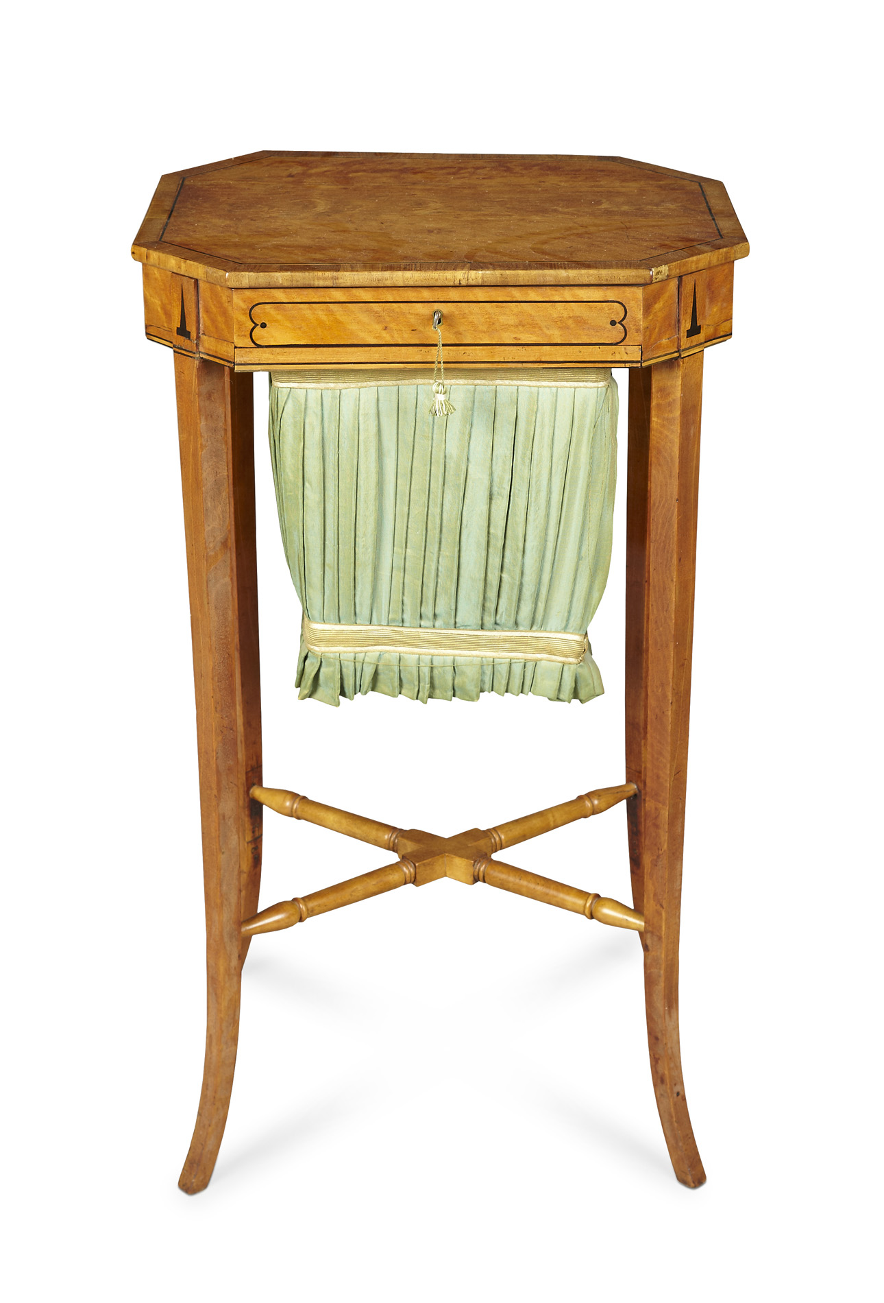 GEORGE III SATINWOOD AND EBONY INLAID WORK TABLE