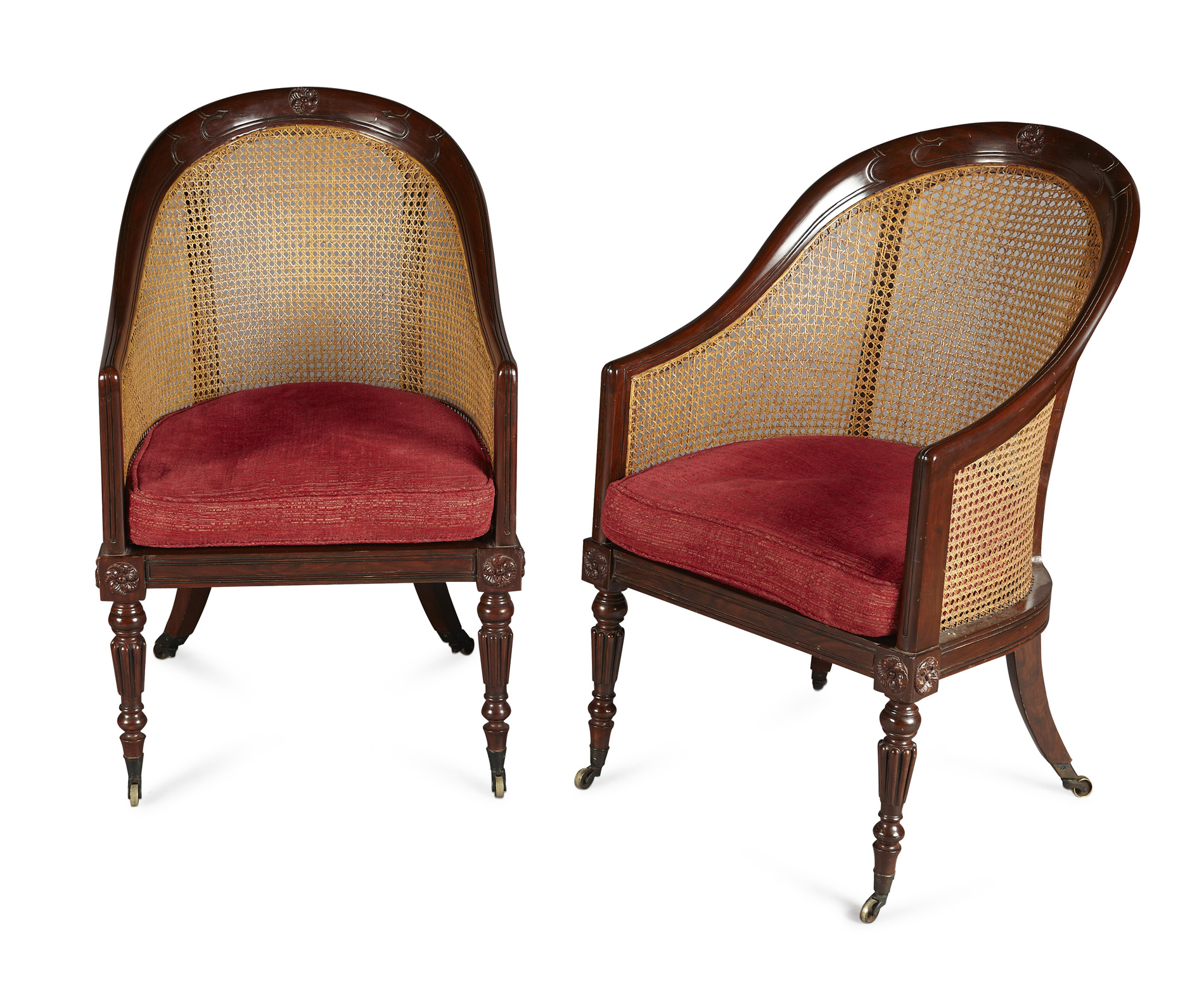 PAIR OF REGENCY STYLE MAHOGANY LIBRARY ARMCHAIRS