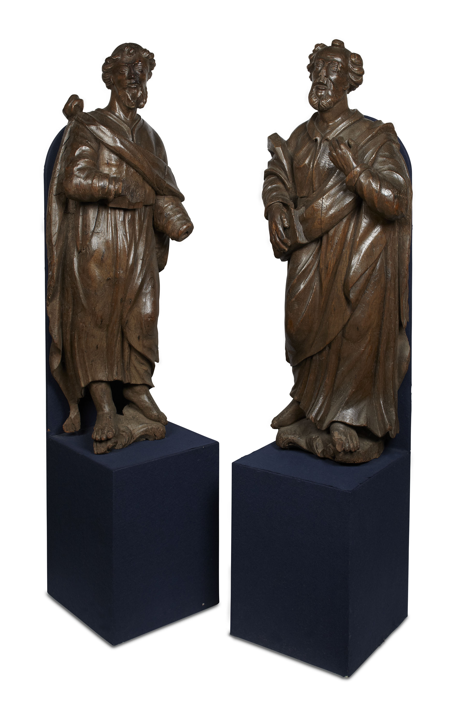 TWO LARGE CONTINENTAL CARVED OAK FIGURES OF SAINTS