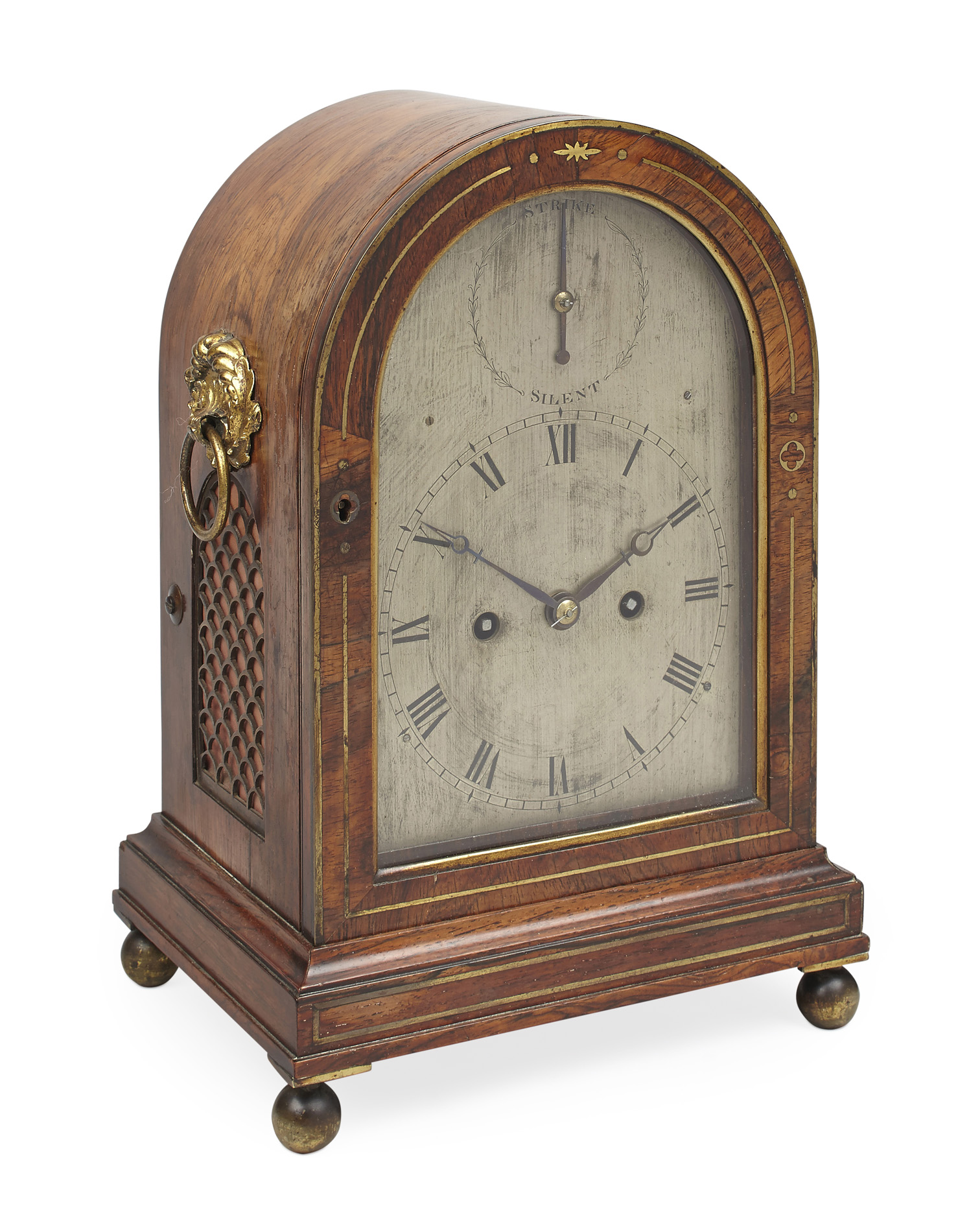 REGENCY ROSEWOOD AND BRASS INLAY BRACKET CLOCK