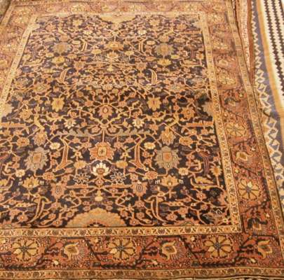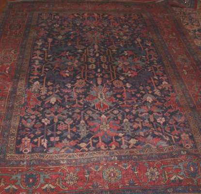An antique silk Heriz rug