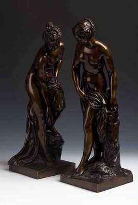A pair of bronze bathing nymphs