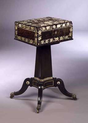 An early 19th century Goanese ebony and ivory inlaid teapoy