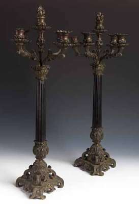 A pair of 19th century gilt brass table candlebra