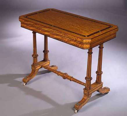 A late Victorian satinwood ebonised card table