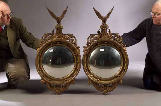 A pair of giltwood convex wall mirrors