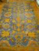 the royal blue ground with allover lattice of palmettes and flowerheads within orange border and guard bands