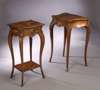 the shaped quarter veneered rectangular top with floral marquetry decoration above frieze drawer centred by cartouche escutcheon, on square section cabriole legs with sabots, joined by quarter veneered and inlaid undershelf