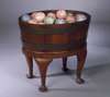 of staved and brass bound form, with lion mask handles, the stand with cabriole legs and pad feet
