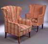 with square back and arms, loose cover, seat cushion and turned tapering legs with castors