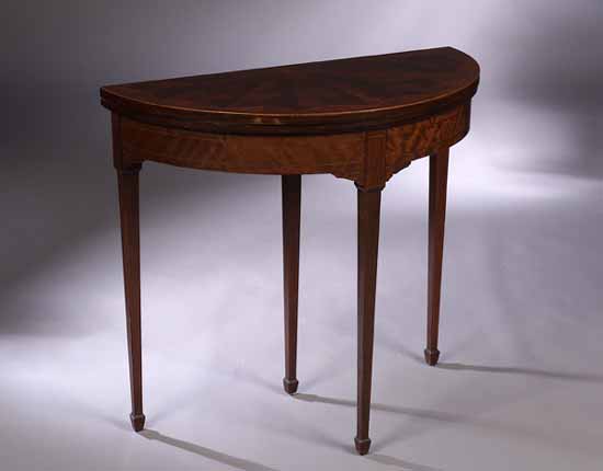 An Edwardian mahogany demi-lune card table