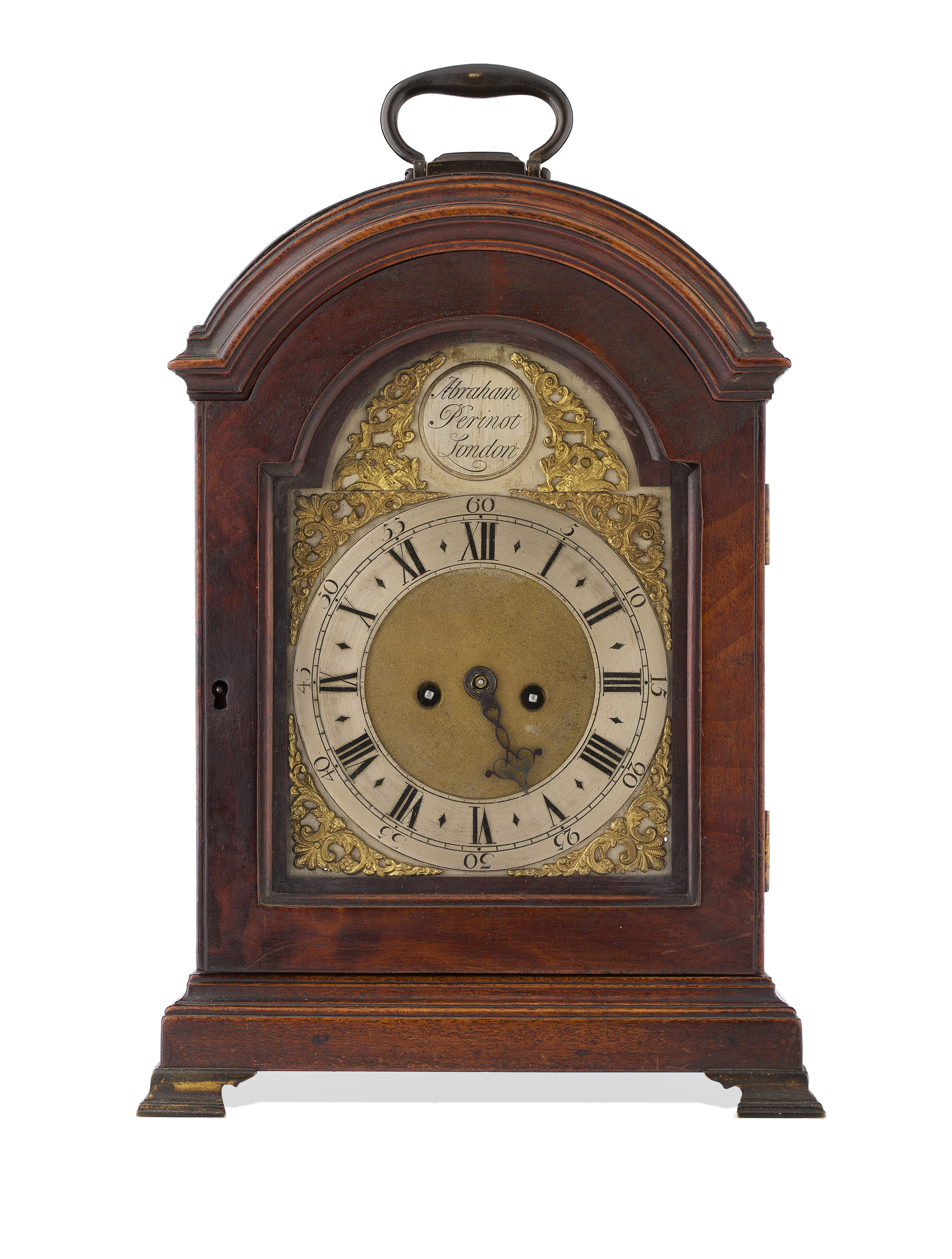 GEORGE III MAHOGANY CASED BRACKET CLOCK BY ABRAHAM PERINOT, LONDON