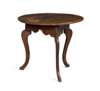 the circular top over a shaped apron and raised on flattened cabriole legs