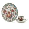 each decorated in the 'Jabberwocky' pattern, the large circular dish with underglaze blue fret mark, 20.5cm diameter, teacup 6.5cm diameter, saucer 13.5cm diameter (3)