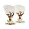 blanc de chine, modelled as nautilus shells with gilded coral supports, raised on a gilded base, green factory mark (2)