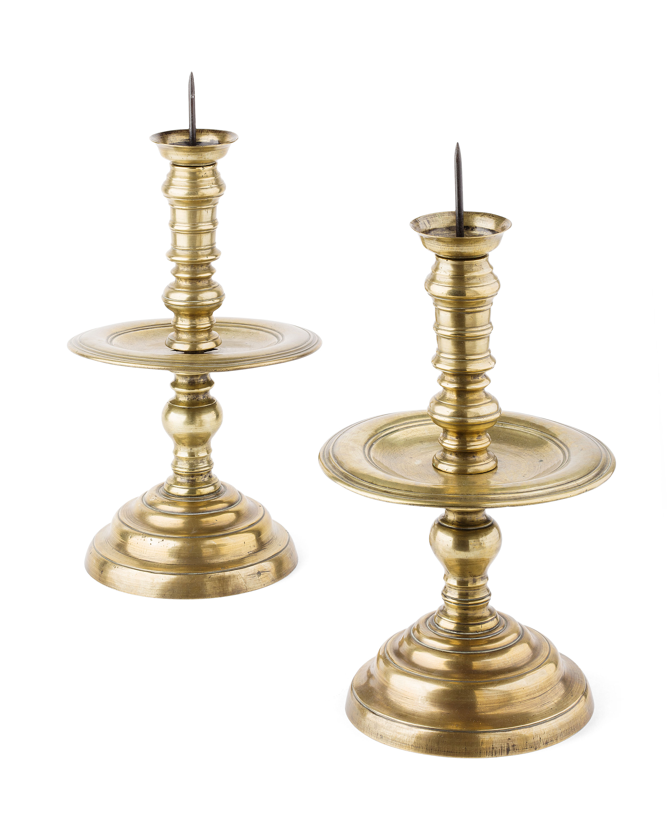 PAIR OF DUTCH EAST INDIES PRICKET CANDLESTICKS