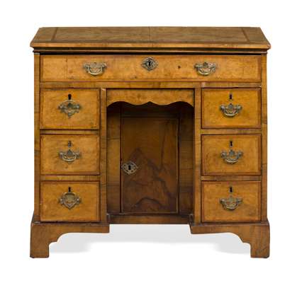GEORGE II BURR WALNUT KNEEHOLE DRESSING TABLE