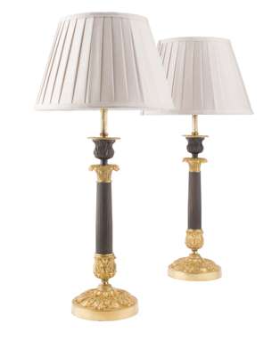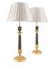 PAIR OF REGENCY PATINATED AND GILDED BRONZE LAMPS