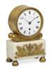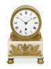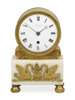 GOOD REGENCY ORMOLU AND WHITE MARBLE TABLE CLOCK BY THOMAS MOSS