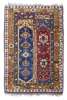 the twin panel red and indigo field, within ochre octagon and stylised vine border between green and red bands