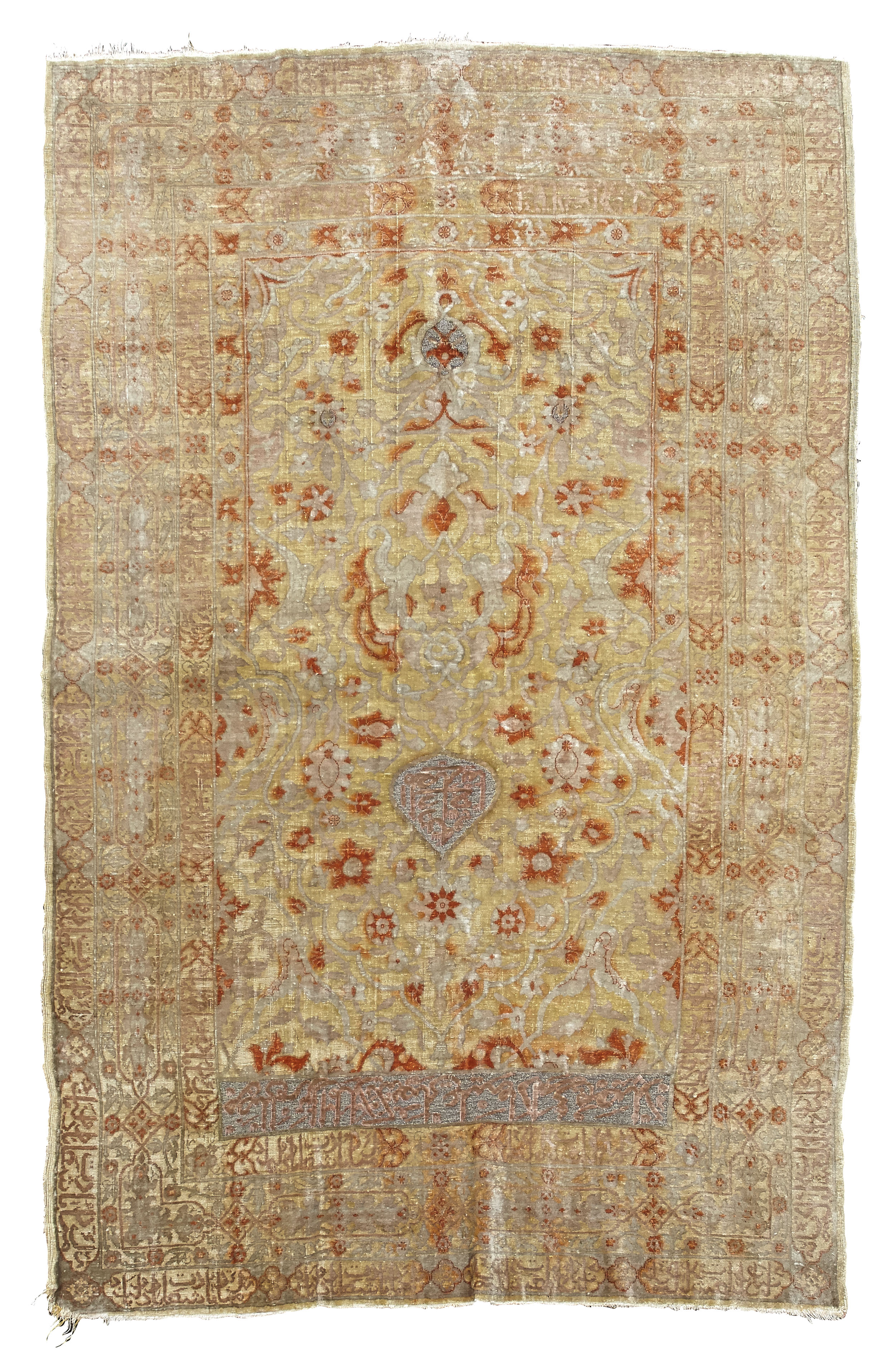 SMALL HEREKE SILK AND METAL THREAD RUG