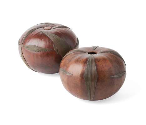 TWO LARGE ZULU WIRE DECORATED GOURD SNUFF BOXES