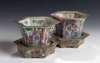 A pair of late 19th century Cantonese flared hexagonal section cache-pots and stands