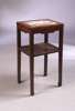 the rectangular top with inset marble panel above a shaped frieze and lower tier linked by square section tapered legs with pad feet