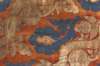 with allover repeating pattern of flowering branches in blue and silver on a rust ground, the edges braided and tassled, also with each pair an arched blue velvet pelmet and a pair of tassled tie backs (9)