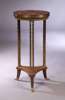 after Adam Weisweiller and signed Henry Dasson 1886, the circular rouge royale marble top on three pairs of gilt bronze columns joined by concave amboyna veneered undershelf, on splayed legs with gilt brass feet