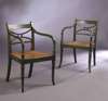 each with slightly carved top rails above carved mid rails with sphere spacers, the curved open arms above caned seats on ring turned twisted and tapering legs (2)