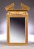 the boldly moulded broken pediment above egg and dark frieze centred by shell and oak leaf festoon, the rectangular bevelled plate within Greek key frame