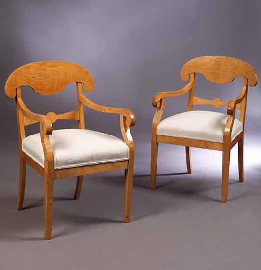 A pair of satin birch armchairs