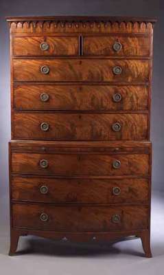 A George III mahogany bowfront chest on chest