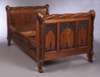 19th century, the rectangular ends with wrythen fluted and beaded raised above carved and twisted bark effect uprights with cast capitals and with cast rosette bosses to the sides, enclosing panels with applied foliate tracery, the side boards with similar panelled decoration, the whole raised on shaped bracket feet