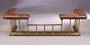 the brown leather seat above brass spindle uprights on a moulded brass base
