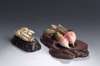 with elaborate green stained leaves, crimson stained vegetables and two applied ladybirds, on hardwood mount