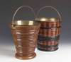 of ring turned tapering form, with turned plinth base, brass liner and carry handle