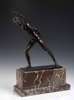 naked apart from a fig leaf, leaning forward with arm upraised, on a stepped marble plinth